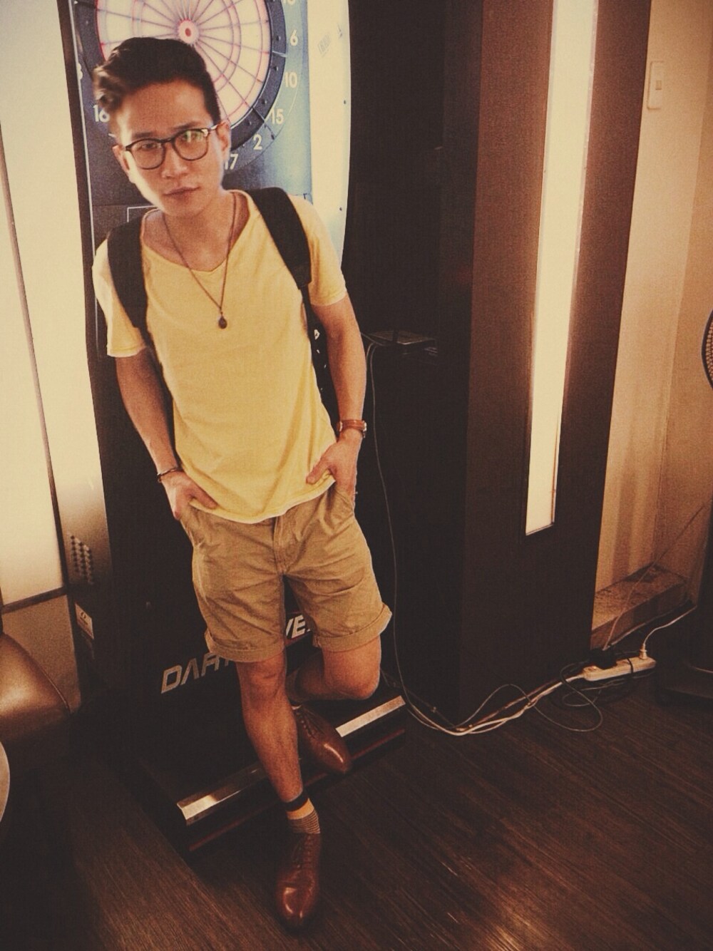 上衣by Remix 褲子by Paul&Bear 鞋子by Vanger 腕錶by OMEGA 飾品by Recovery 項鍊by Remix 包包by Herschel 眼鏡by 手作物 襪子by 私物