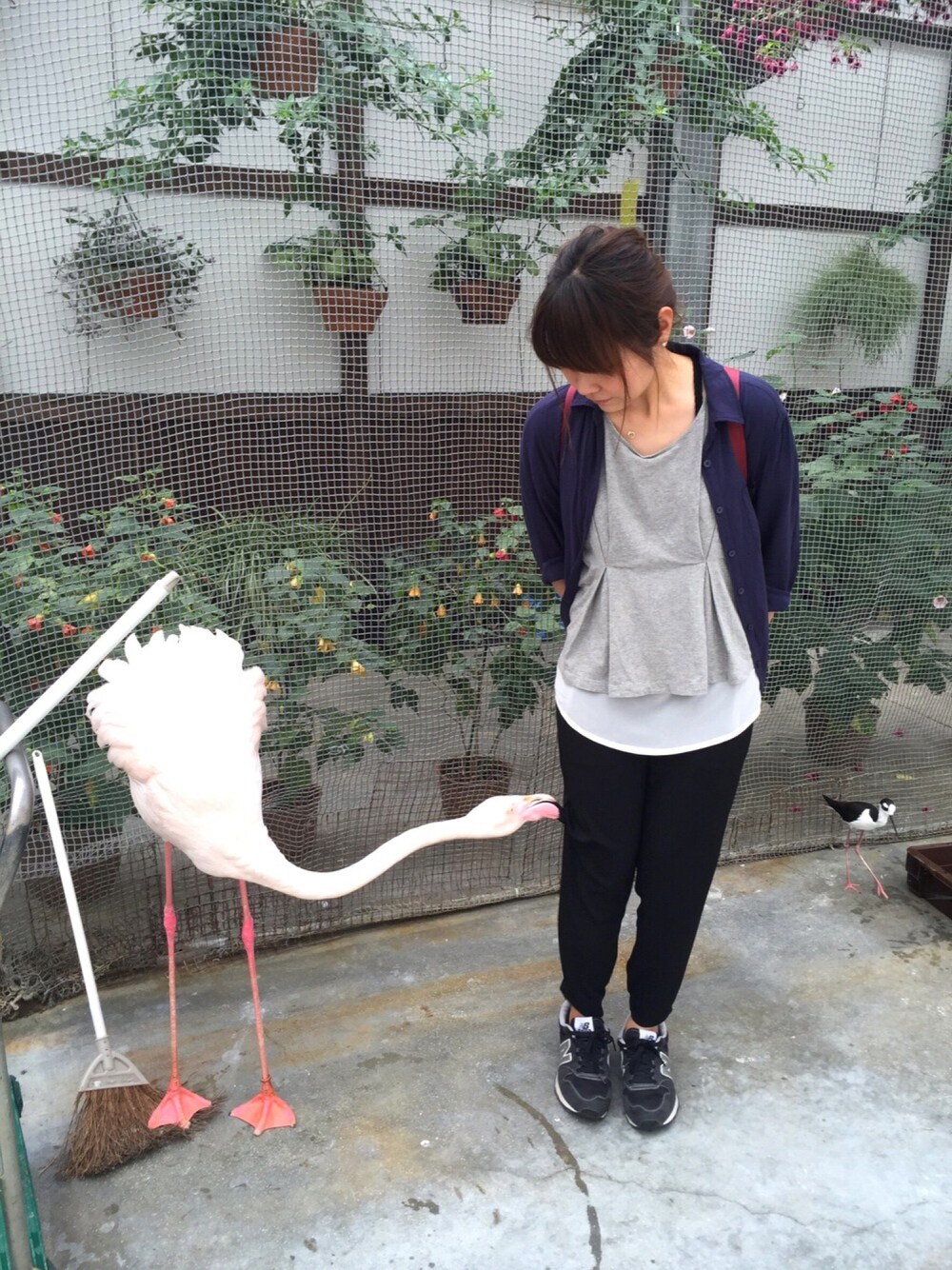 花鳥園に行きました🐥 これはフラミンゴにかじられてる様子です。 シャツワンピなのに、かじられるから後ろに隠してて、普通のシャツみたい。。。