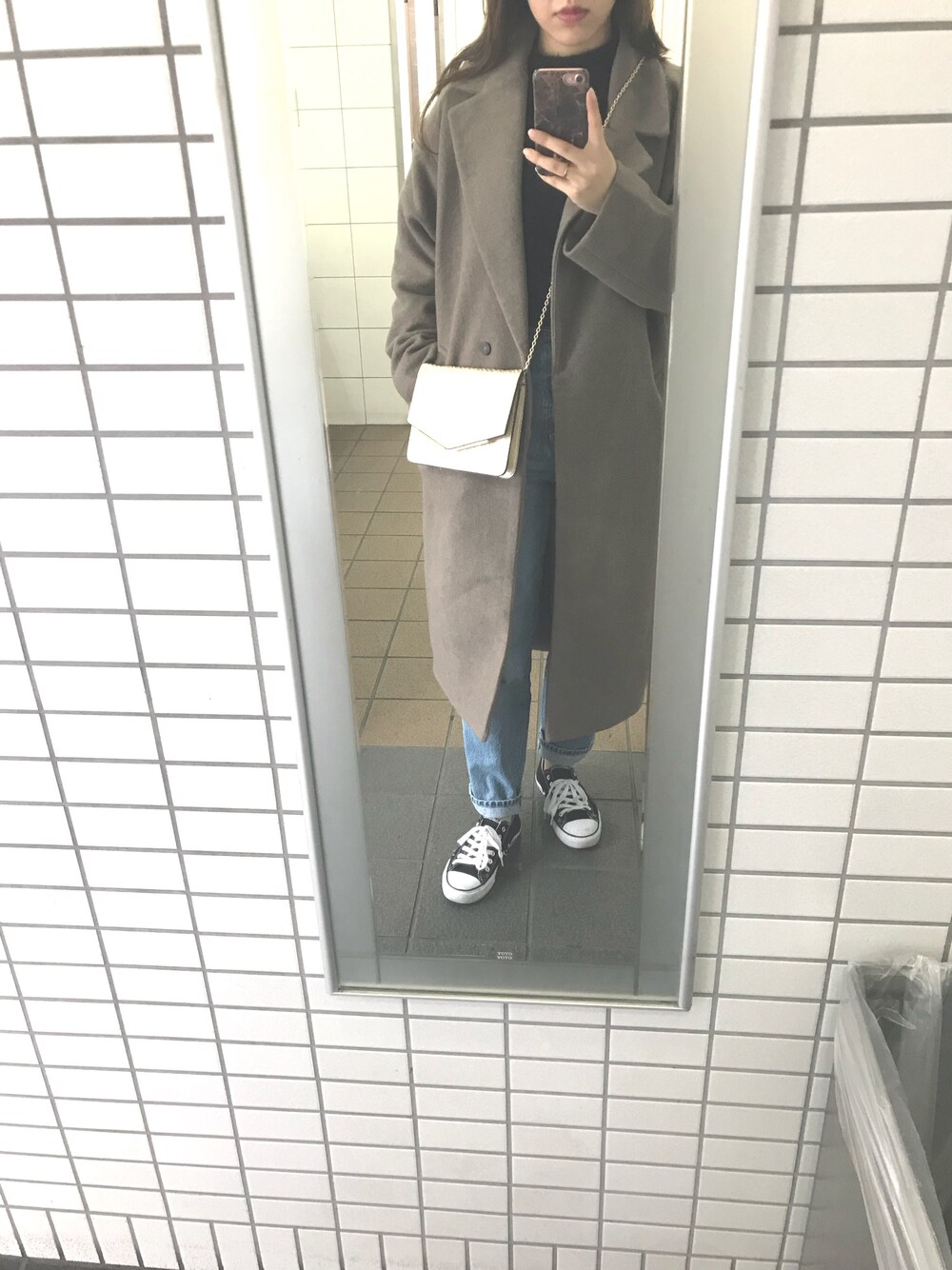 オニューのビックカラーコート。 一目見て惹かれて、さらに腕を通して感動🤷🏻♀️ その日かなり大きいニット着てたにも関わらずスーッて腕が通って!! ざっくりニットばっかり着る私には感動的なアイテムでした♡♡ grayがLサイズしかなかったんだけど、blackのMサイズ着てみたらこれまた丈感が可愛くて。腕もスムーズに通ったしってことで、お取り寄せお願いしてGetしました🤩 優しい店員さんに感謝!! blackも超可愛くて最後の最後まで悩んで結局一目で惹かれたgrayにしたんだよなぁ。🖤