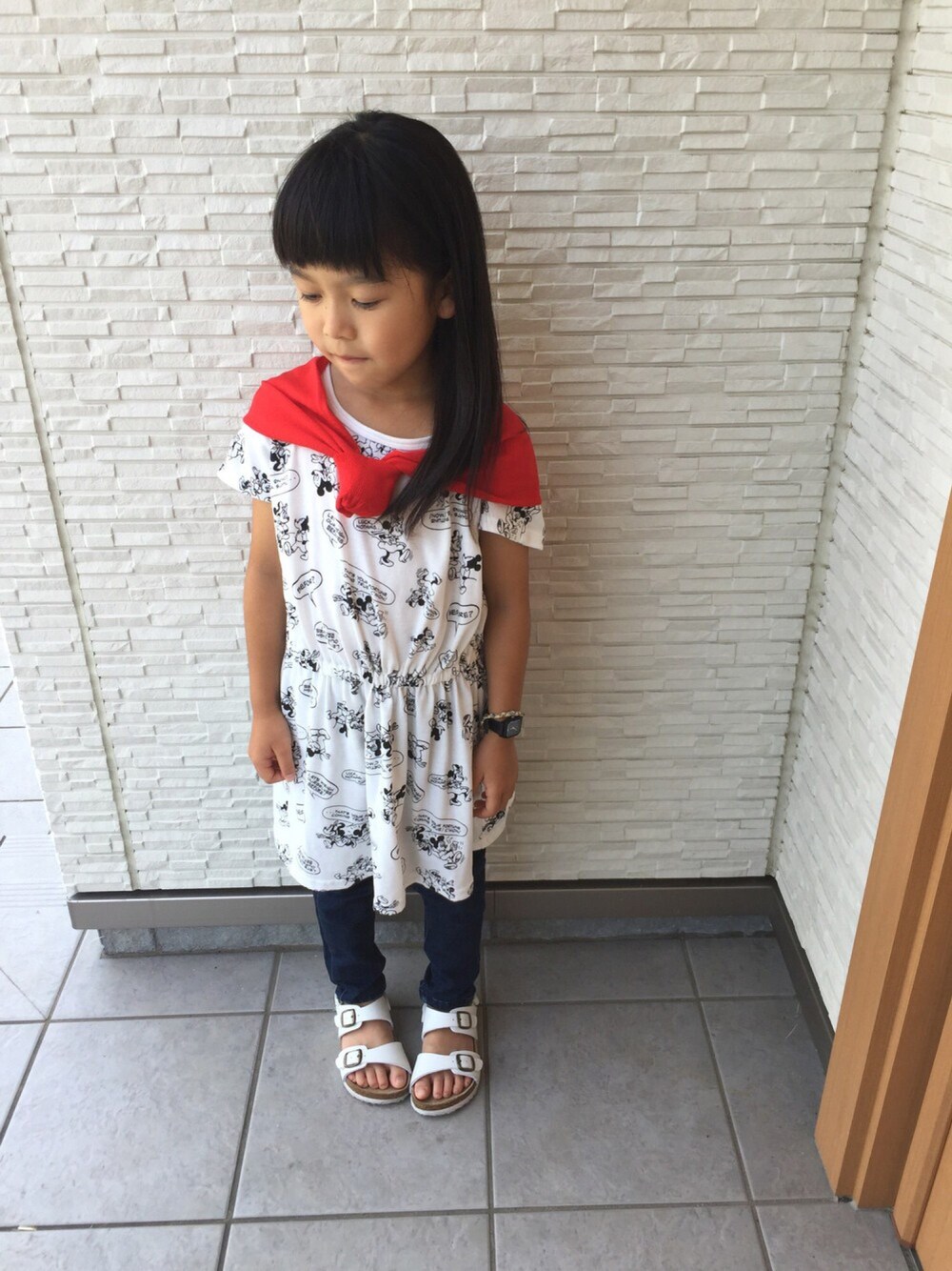 いつも見ていただきありがとうございます。 気軽にsave、フォローお願いします^o^ 今日は女の子らしく。 赤いカーディガンがポイントです。