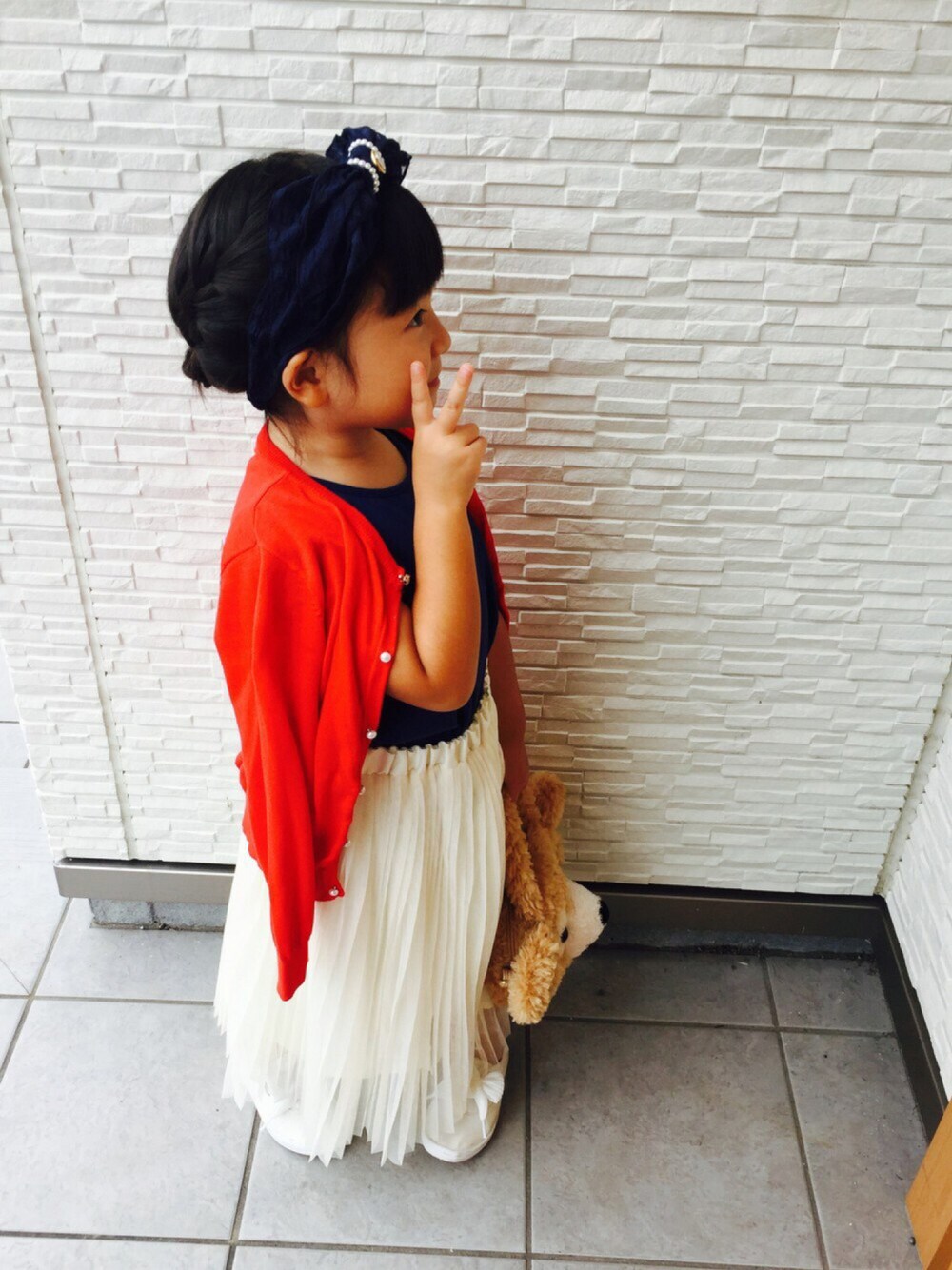 見ていただきありがとうございます^o^ いいね、save、フォローとても嬉しいです❤️ 今日は妹ちゃんコーデです。 最近妹ちゃんはこのスカートがお気に入りすぎて、 毎日のように着ています。 お姉ちゃん用に買ったのに…。
