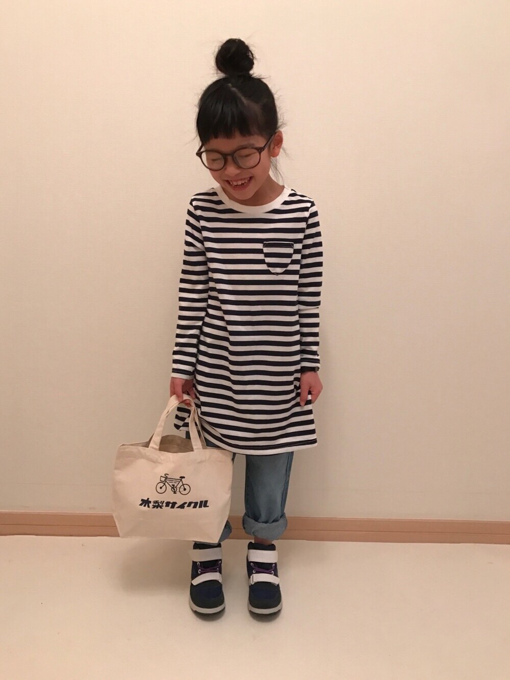 見ていただきありがとうございます😊 いいね、save、フォローとても嬉しいです❤ 今日のポイントは木梨サイクルランチバッグです✨ めちゃ可愛いのでお気に入りです。 ボーダーワンピースはライトオンの福袋に入っていたもので、 パンツはGUで790円で購入したものです✌️ 全身プチプラです^o^