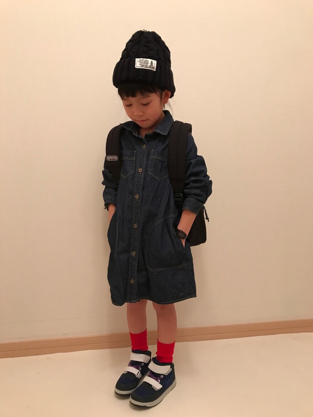 見ていただきありがとうございます^o^ いいね、save、フォローとても嬉しいです❤ 今日は赤靴下がポイントです。 ワンピースはguです。 アウターとしてもワンピースとしても着回せます✨
