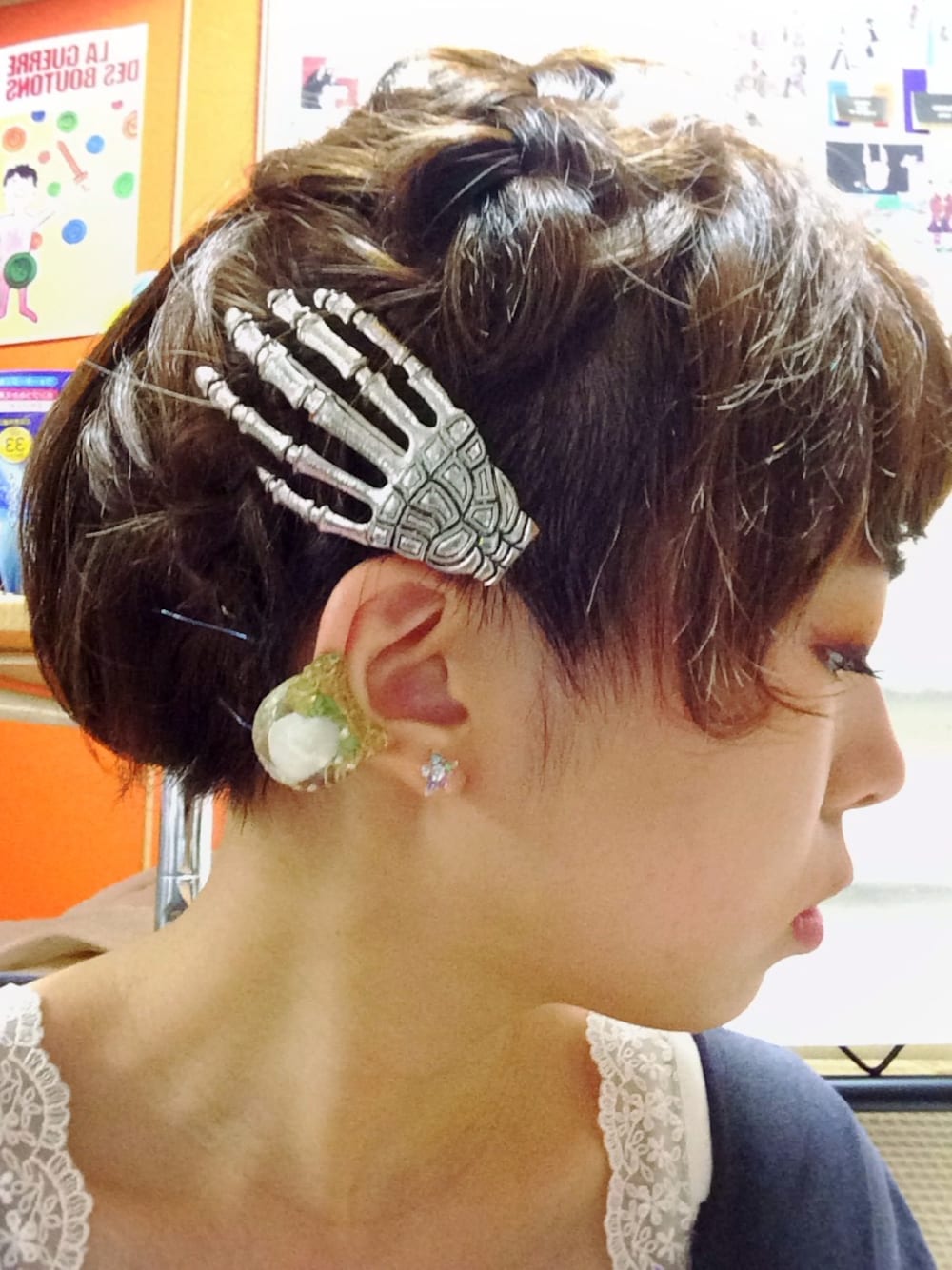 今日は顔と髪の毛を🌟 ◦軟骨につけたイヤリングは、アクセサリー作家めろちゃんの作品mellow。 ネコちゃんの形なのです🐈💕 ◦髪型は、前髪とサイドの毛は軽く巻いておきます。 サイドより後ろの毛を編み込み。 髪の毛短いから、編み込みは大変ですが、、、 ワックスつけて馴染ませながらするとやりやすいです☝︎✨ 敢えてヘヤピンいっぱい使う方が良いです🌟 machupichuで買った手の骨クリップをアクセントにしました🌟 ◦メイクも紹介☝︎(暇すぎてw) 最近もっぱらピンクとオレンジにハマっています。 shuuemuraと、REVLONと、マジョマジョを使ってます☝︎✨ でも、私は知ってるんです。 私はすっぴんが結局かわいい。←(いや、ほんとに) たまにはこんなのもありでしょ🌟 メイク、好きなんで、またアップしそう(^ω^)