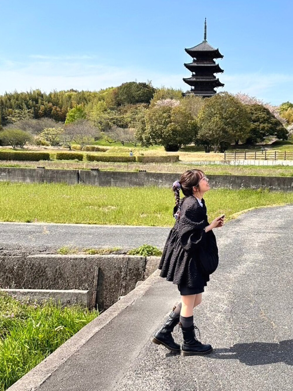 久しぶりの投稿🤣 友達に会いに岡山に行ってました🎶 天気が良くて、暑かった〜! まだ桜も咲いてて、春を感じました🌸 ジュメロのワンピーストップス ジュメロのハーフパンツ ayameのサングラス ヘアスタイルはスカーフを括って三つ編みにしました🧣