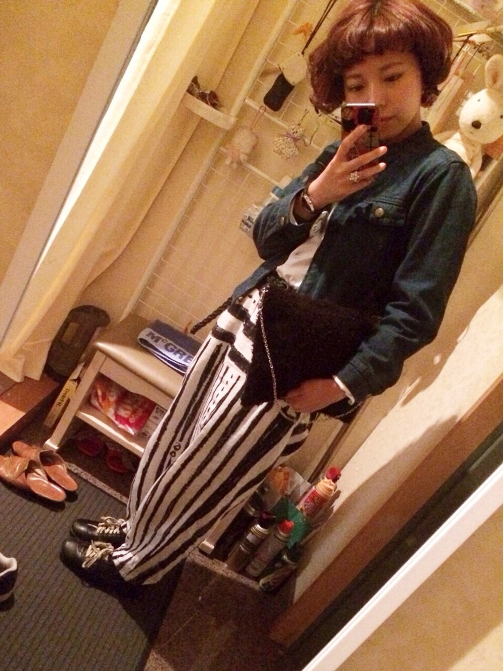 シンプル💁☆ 💫デニムジャケット 小学生の頃から着てるやつ 💫中に着たシャツ UNIQLO メンズ 💫ストライプパンツ l'atelier du savon 💫靴 💫クラッチバック didizizi(多分) 最近シンプル。 ライダース欲しい… 最近イヤリングダブル付けにハマってます。 耳たぶと軟骨にね。(小窓参照) これ付けるだけでだいぶ華やかになる! 最近、やたらと将来について考えます。 もう非現実的ではいられない。 それが服に現れるというなら、 シンプルでモノクロな服装というのは 何を現すんやろう。 とりあえず私は服が大好き。