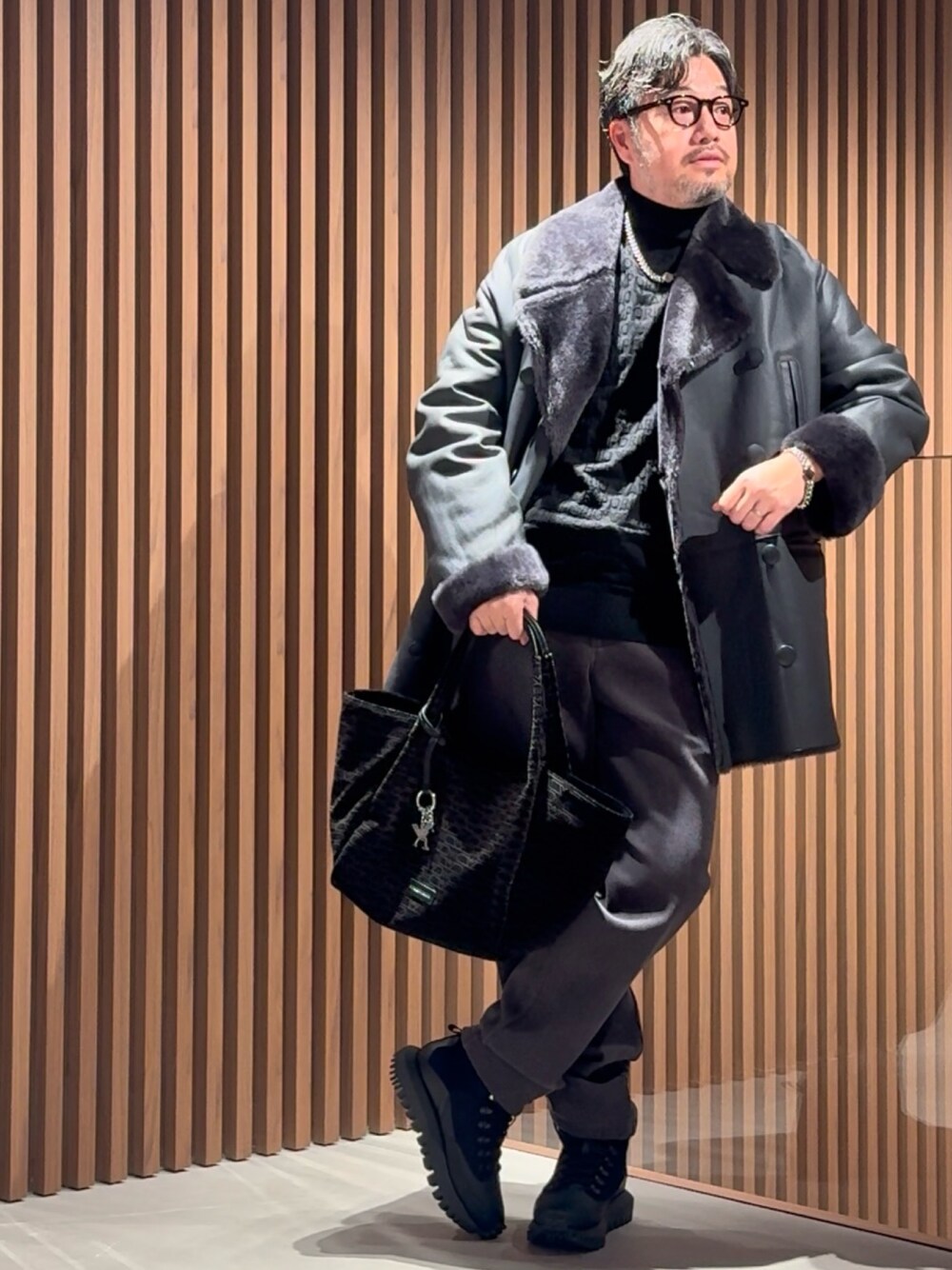 じゅんちゃん(EMPORIO ARMANI 六本木ヒルズ店)のニット/セーター「【エンポリオ アルマーニ】ロールネックセーター バージンウール オパール加工オールオーバーレタリング」を使ったコーディネート