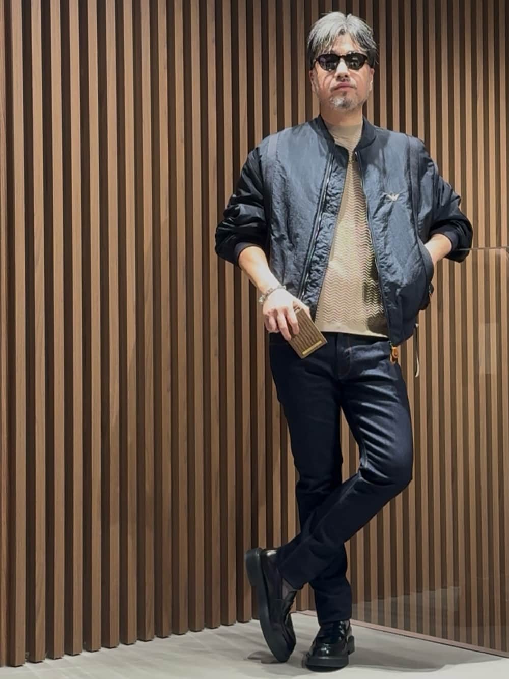 じゅんちゃん(EMPORIO ARMANI 六本木ヒルズ店)のブルゾン「【エンポリオ アルマーニ】ボンバージャケット ナイロン パスメントリーテープ」を使ったコーディネート