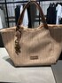 ぽよ(EMPORIO ARMANI 銀座店)のトートバッグ「【エンポリオ アルマーニ】トートバッグ ウーブンストロー ロゴチャーム」を使ったコーディネート