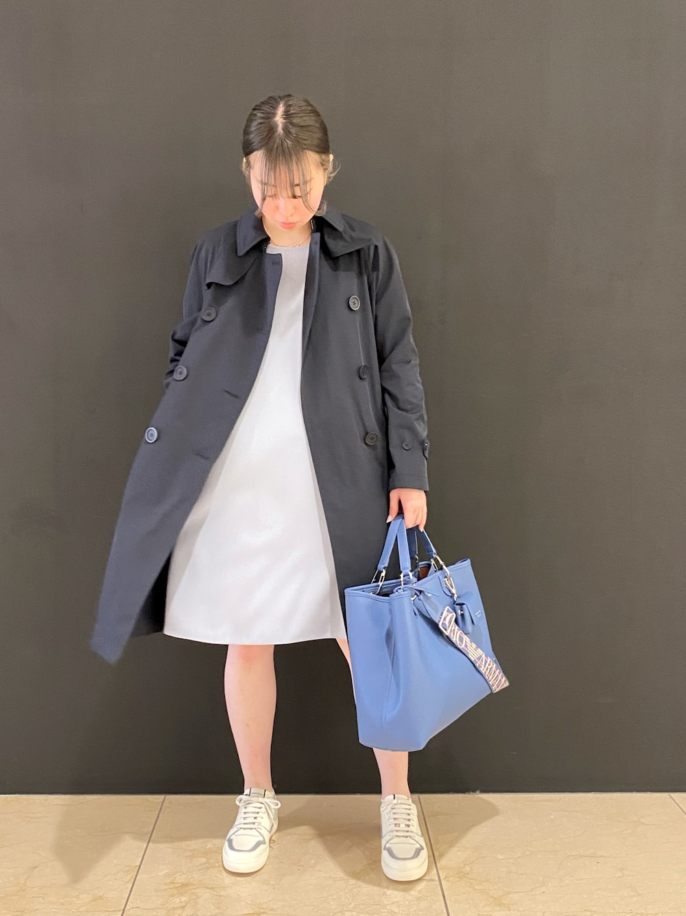 トレンチコーデ第2弾✨ 綺麗めワンピースにあえてスニーカーでカジュアルな合わせでコーディネートしてみました✌︎ お食事など、いつもよりおしゃれに合わせたい時にはパンプスやブーツなどでシックに合わせるのも◎ 是非商品のお問い合わせ等お気軽にご連絡くださいませ。