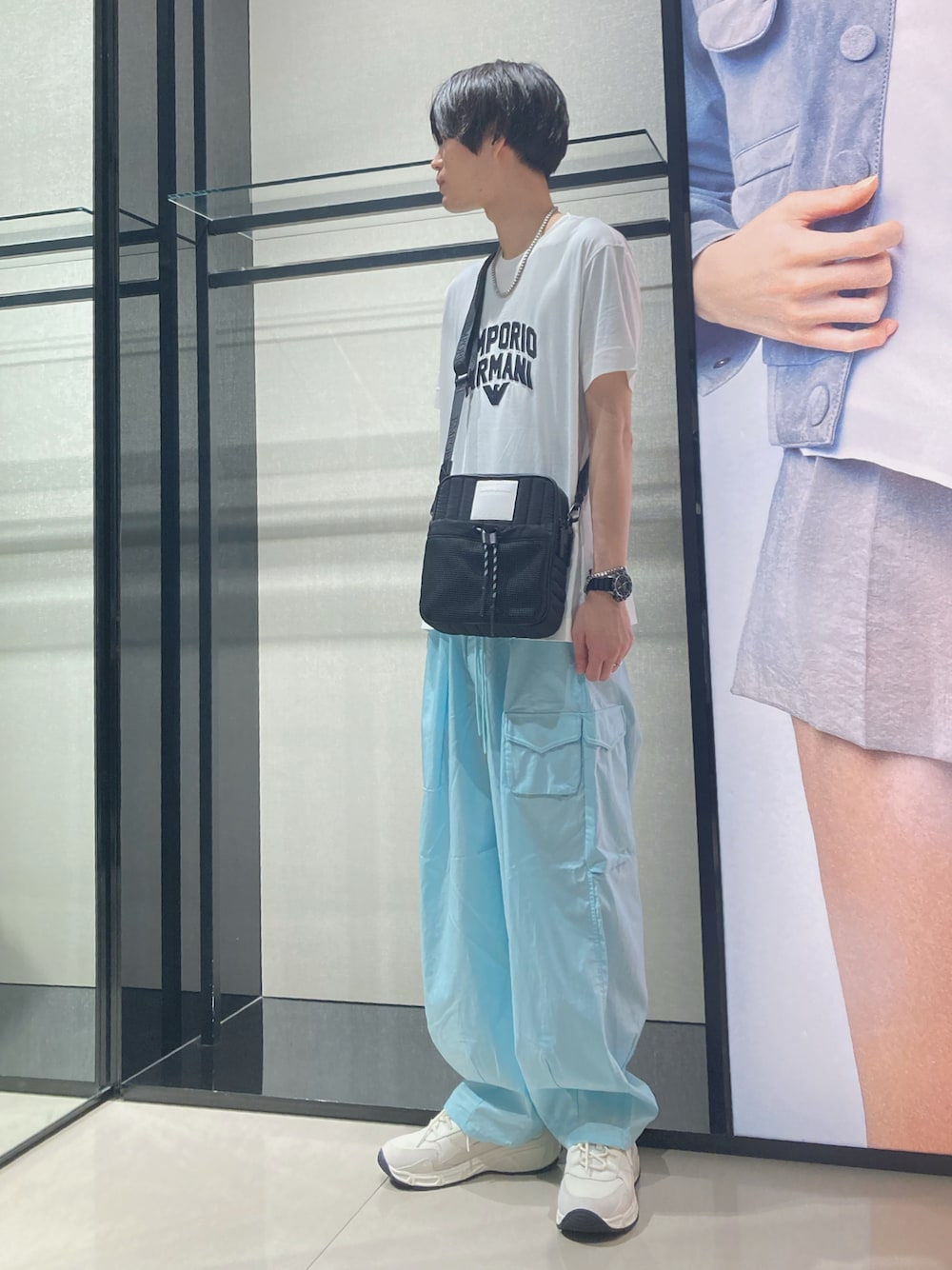 ご覧いただきありがとうございます😊 夏らしいブルーのカーゴパンツに白のTシャツで合わせた爽やかなコーディネートとなっております! T shirt:¥25.300 pants:¥57.200 bag:¥39.600 shoes:¥52.800 necklace:¥23.100 Watch:¥25.250 bracelet:¥19.250 ※全て税込価格になります。