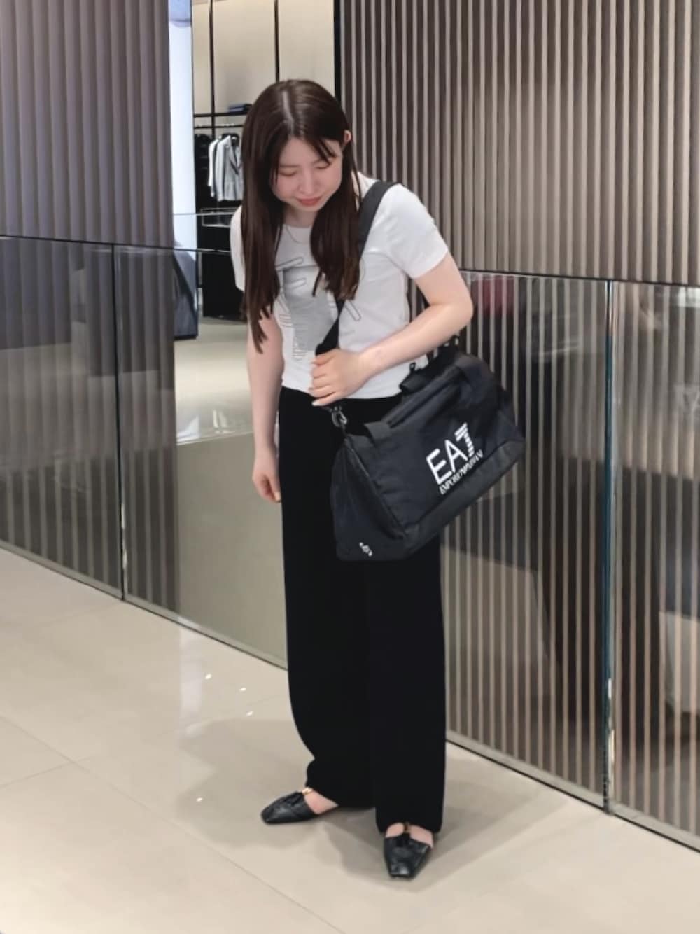 REI(EMPORIO ARMANI 名古屋)のTシャツ/カットソー「【エンポリオ アルマーニ EA7】Logo Series クルーネックTシャツ ストレッチコットン」を使ったコーディネート