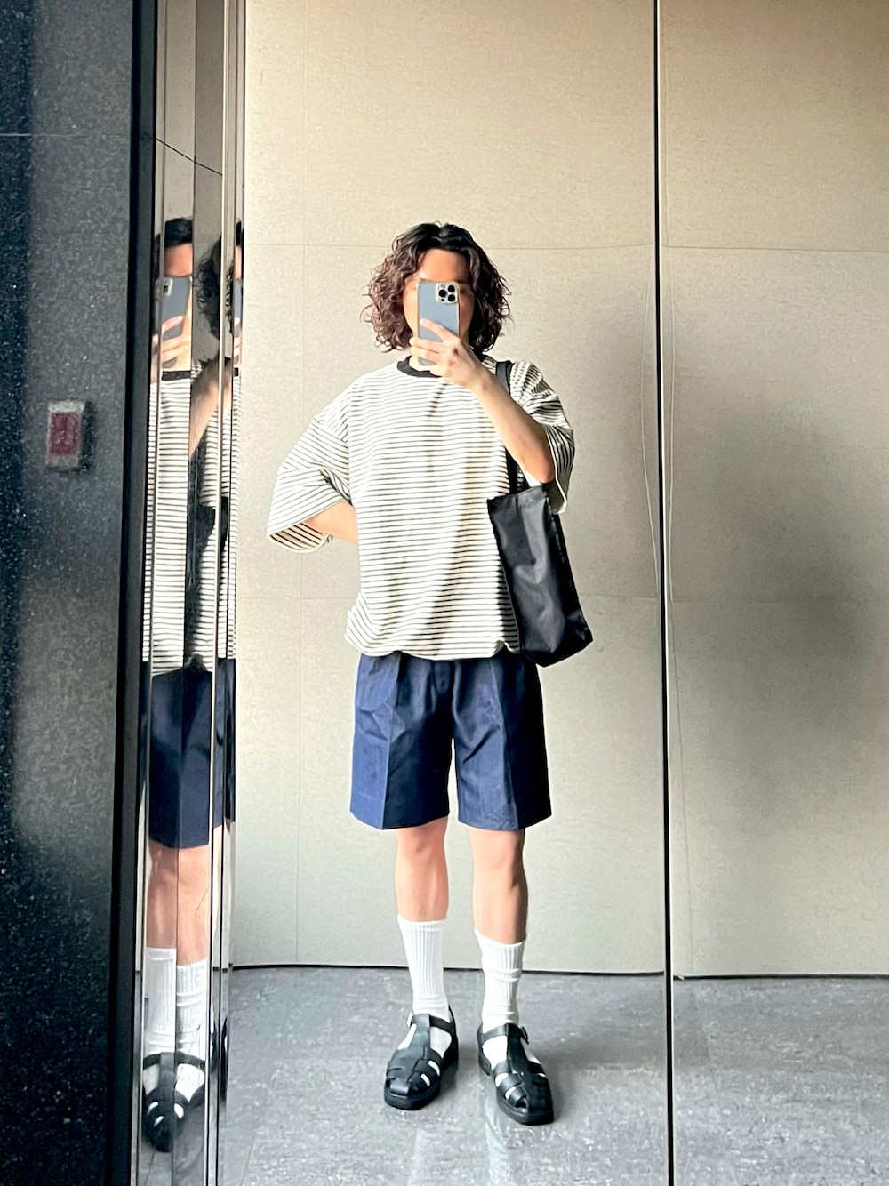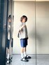 ご覧いただきありがとうございます! 今回はボーダーTシャツにデニムショーツを合わせました。 Tシャツの裾のドローコードでシルエットを変えるのは凄く便利です! ショーツは古着屋で一目惚れして、つい買っちゃったアイテムです。ワンウォッシュと近い紺色、僕の身長に合う長さとシルエット、流石に買わなきゃいけないんです笑。