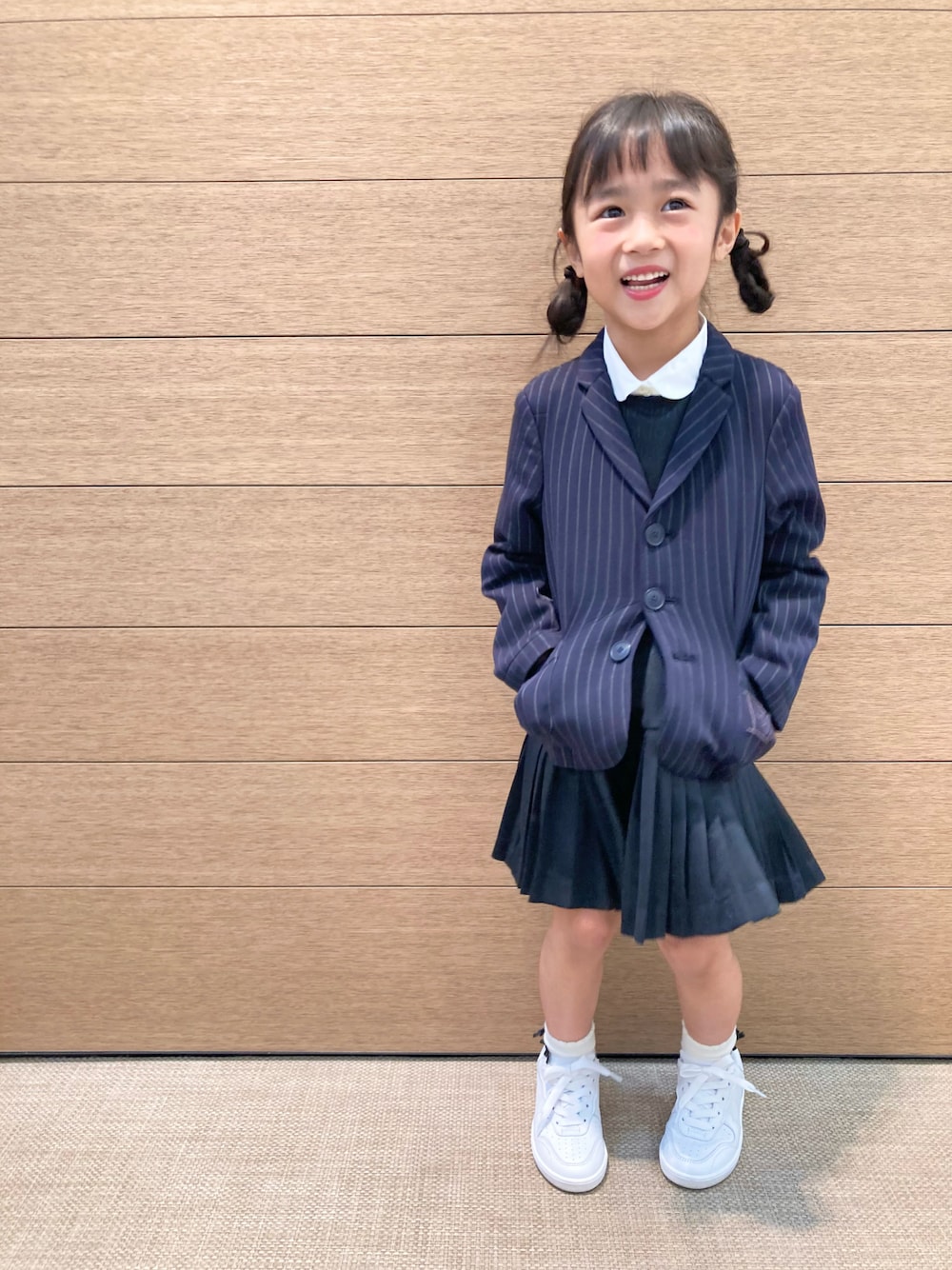 女の子のジャケットスタイルは、ワンピースやスカートを合わせると女の子らしさとカッコ良さのいいとこ取りコーデになりますね😊🩵 ちなみにこちらのジャケットはボーイズ商品なんです🙌🏽全く違和感なく着れちゃいますね✨