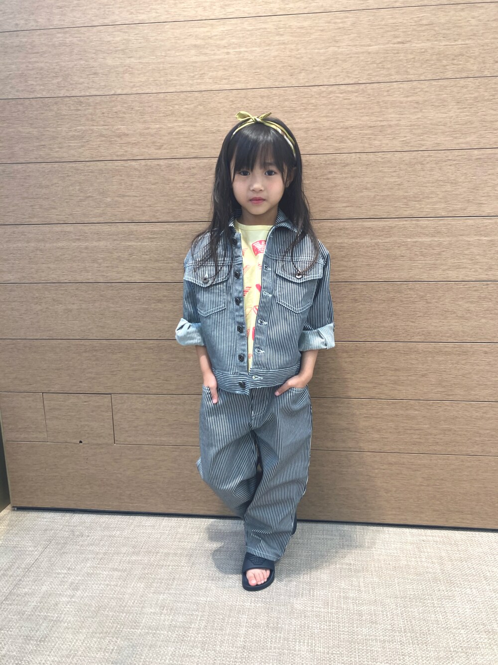 ヒッコリーのジャケットとパンツを女の子に着て貰いました。 男の子が着てもかっこいいヒッコリーですが、女の子が着るととっても新鮮‼️