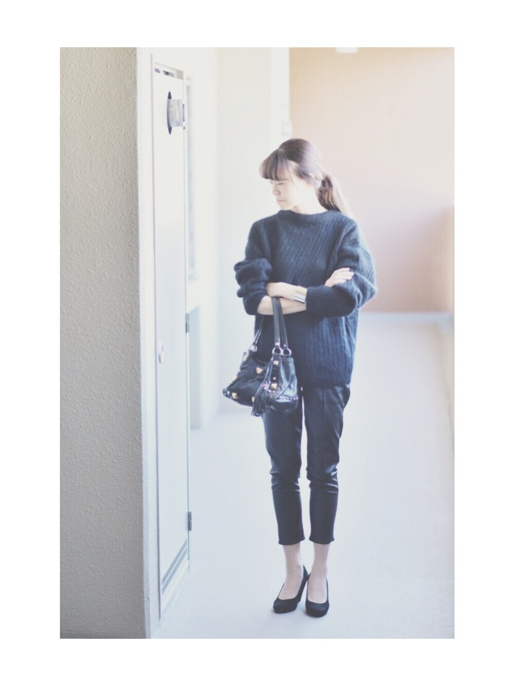 オールブラックコーデ⚫️♠️♣️Acneのモヘアニットのざっくり感がかわいい🆒