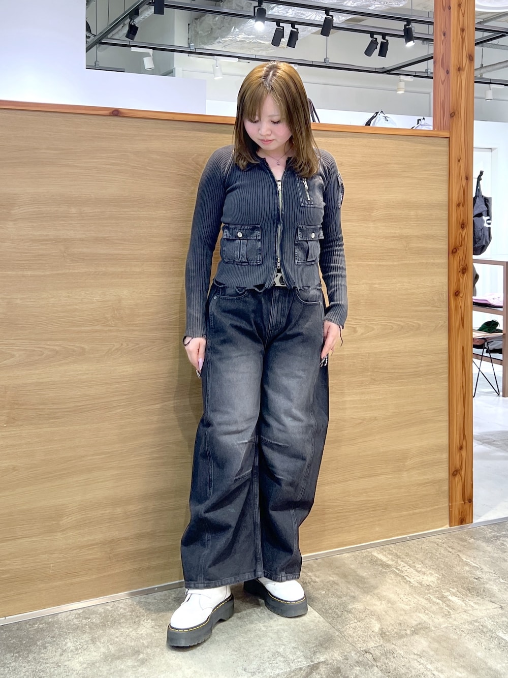 あまね(X-girl原宿(ラフォーレ原宿))のTシャツ/カットソー「DISTRESSED WOVEN MIX ZIP UP TOP」を使ったコーディネート