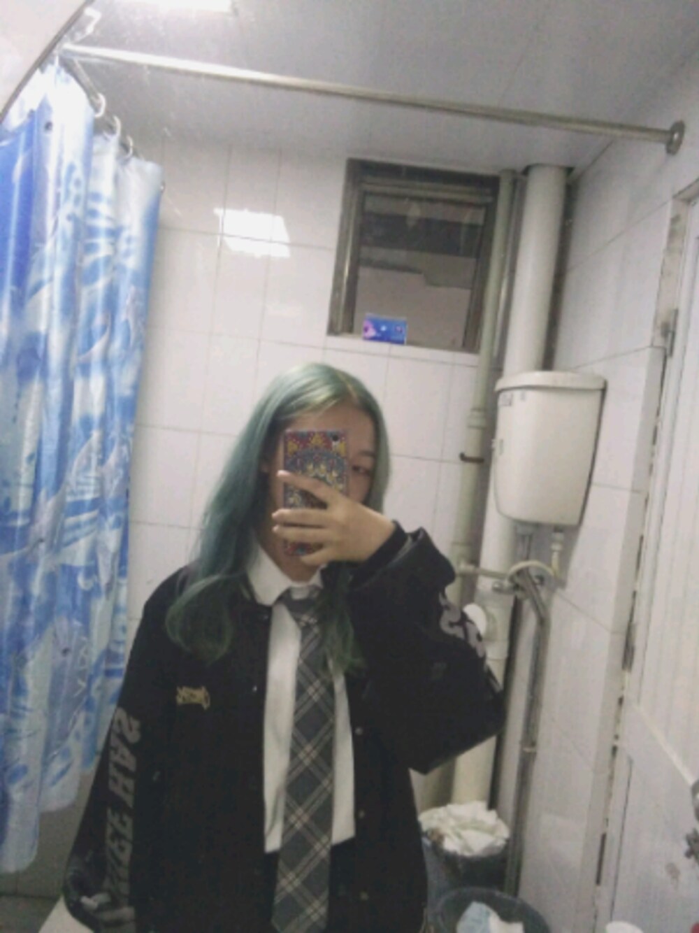 那天第一次染发 也是第一次漂头发 漂了七度 染了青木灰加一点绿色