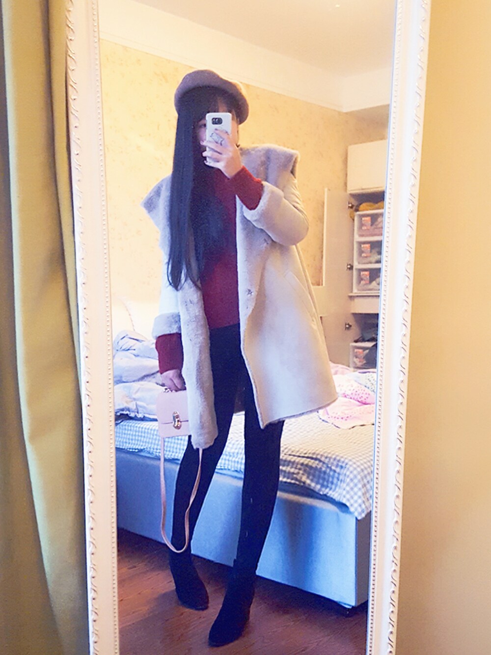 看起来好像很有钱的样子😝 大衣超喜欢很软很暖和💕 为什么总是在回家以后才想起来拍呢……