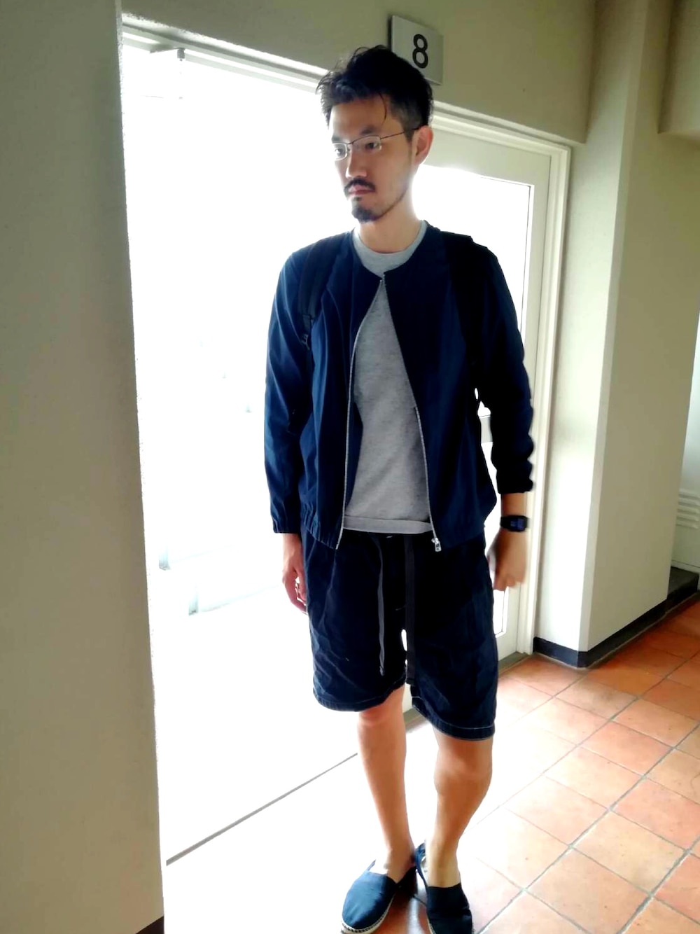 ネイビー基調、トップスを長袖でかつ、ボトムスをハーフパンツだけど幅広のデザインにしてYとIの中間。 と、よくよく振り返ると以前とほとんど同じコーデだったー! 車輪の再開発! 連休明け、暑いし無理せずいこー!