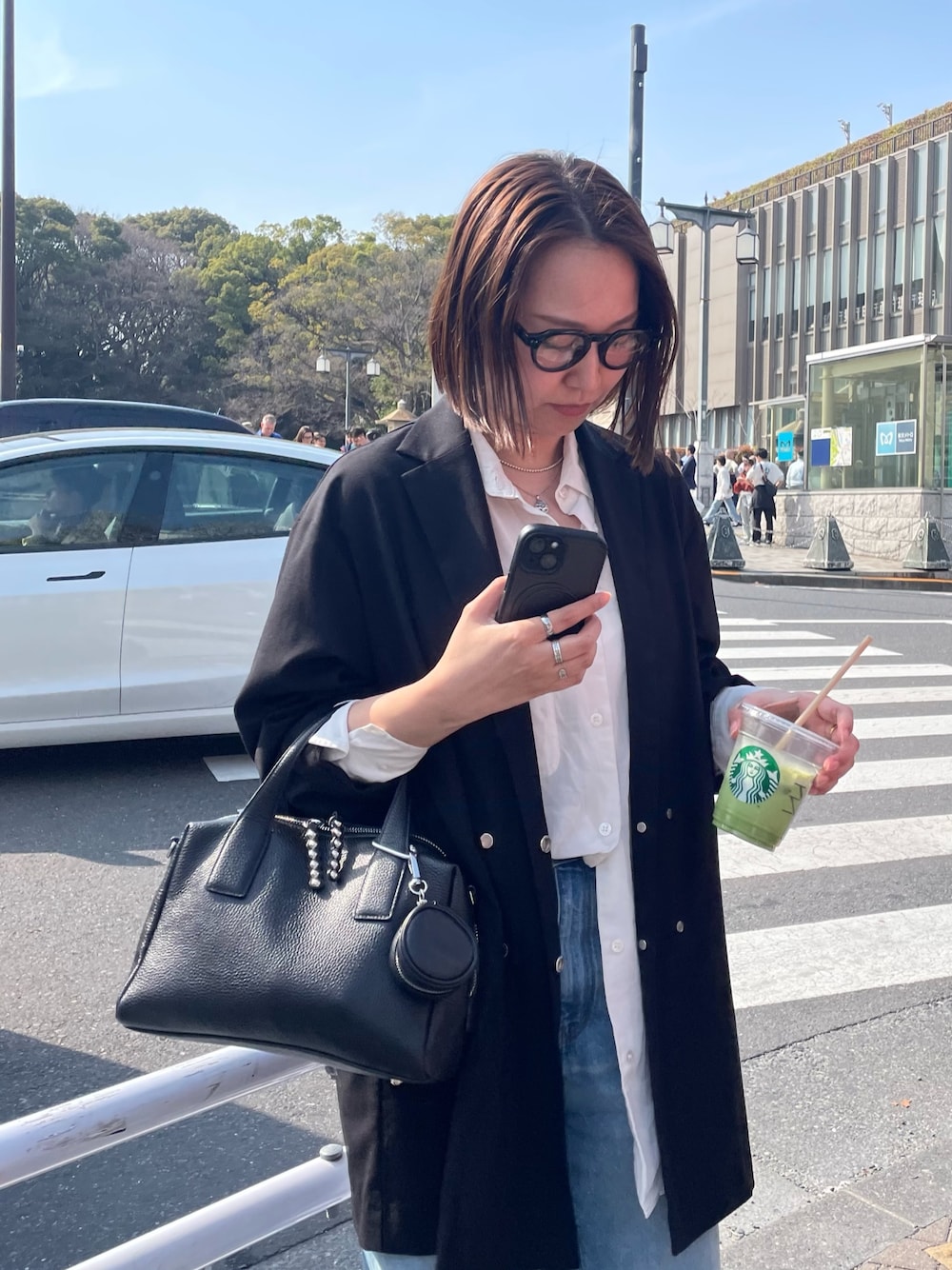 バッグ┈┈┈┈┈┈┈┈┈ サイズ感:膝上に余裕で乗るコンパクトめなサイズ 素材感:傷の付きにくいシュリンク加工の牛革素材。厚手なレザーですが600g未満で軽量 着用感:ダブルファスナーで開口部が広く開くので、ボストンバッグでも中身が出し入れしやすいです。 ショルダー付きなので両手を開けたい時も◎ シンプルバッグですが、ファスナーの引き手とベルトに施された丸みのあるスタッズがとってもかわいいです!