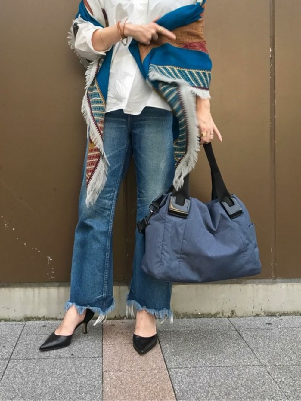 秋の通勤スタイルも定番の樹脂パーツトートバッグが大活躍。 デニムと合わせてもきちんと感のあるデザインです。 ショルダーバッグ持ちも出来てとても便利。 シャツスタイルに大判ストールを一枚プラスして、 カジュアルだけど品のあるコーディネートに。 inouitooshはフランス、パリのファブリックが素敵なブランド。 柄の出る場所によって表情豊かに使える万能なストールです。 広げた時の模様が動物のモチーフでとてもユニーク◎ 大判ストールは秋服を着るまでの季節にも一枚あると活躍しますよね。 ストール以外にトートバッグやポーチのご用意も。