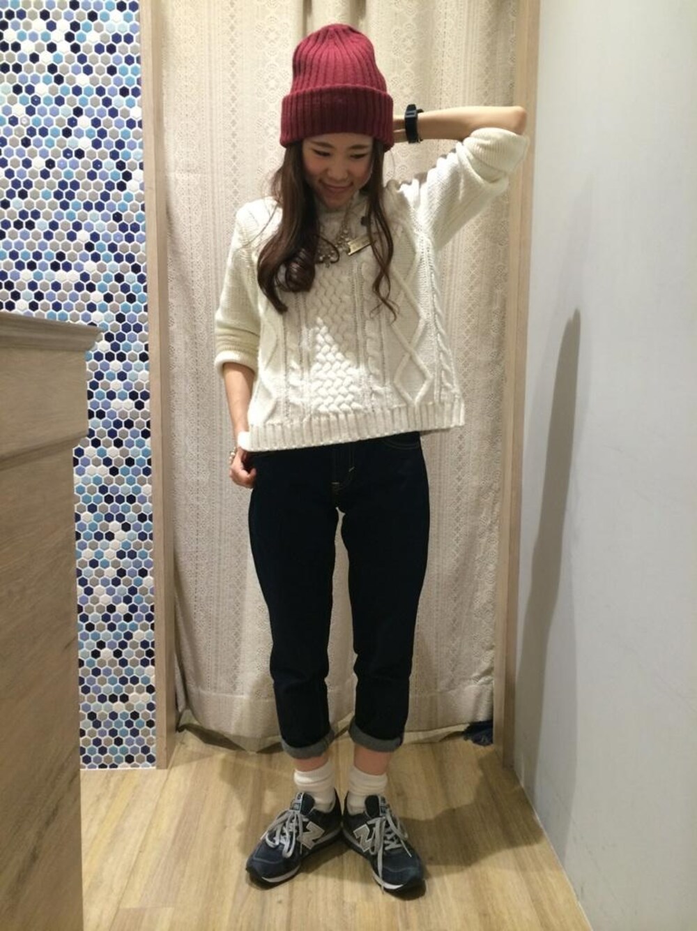 可愛らしいケーブルニットを カジュアルに着たかったんです。