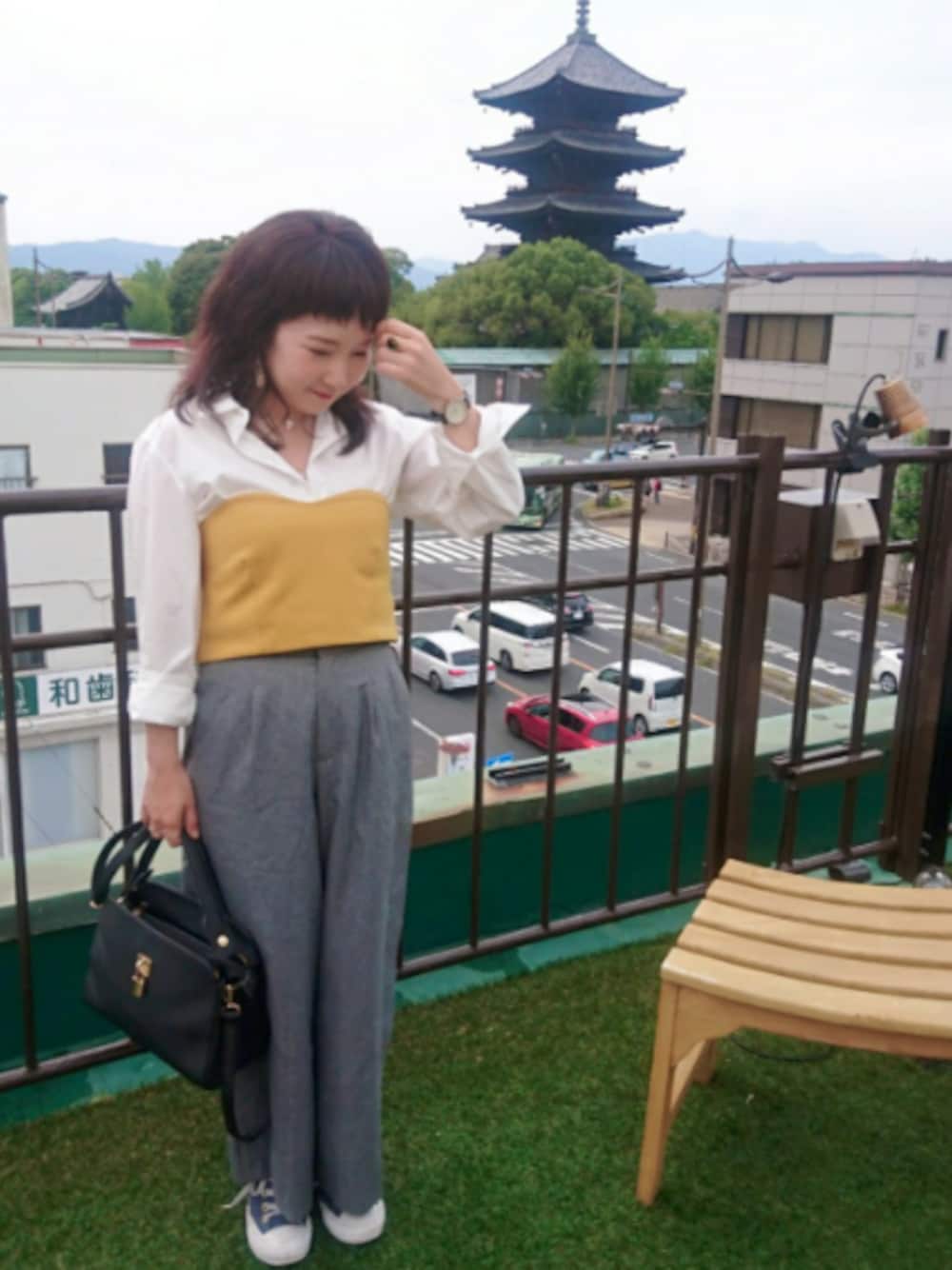 五重塔が見える カフェへ☕❤️ (※あ、前髪をばっさり切りました✂️) 夏のセールで買ったビスチェを 使い回したくて😂 もっぱらwear様で検索🔍 2点セットを組み換えて 🍁っぽく😳 お得に買ったものとか 去年悩んで買ったものとか 着まわしできたときに 嬉しくなるのは 私だけ…?😎