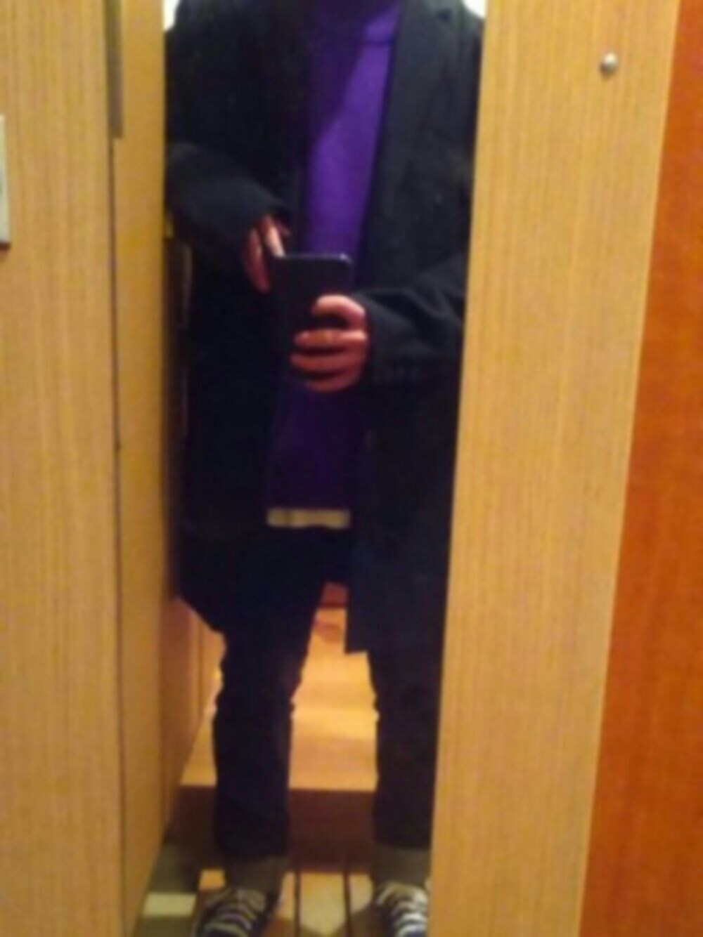 ご覧いただきありがとうございます😊 今回はモノクロに紫を差した冬コーデです! 年始に友人とアウトレットに行ってきました。その時に購入した黒のチェスターコート。前から黒のチェスターコートが欲しかったので、ちょうどいいサイズのものを見つけたときは感動しました笑。 いま、茶色系のコートは周りの人がよく着ていますし、中に合わせる色も限られてきます。そのため、黒のチェスターコートはオススメです! では。 【詳細】 チェスターコート ・サイズ M ・質感 しっとりしていて、柔らかい。 ・ポケットの深さ スマホが1つ入る程度。 ・腕の長さ 掌の半分の位置までくる程度。 ・コメント このコート(003 J.FERRY)はセールで7000円で購入しましたが、いまならZOZOTOWNで5411円で購入できますよ!そこまで重くないので、着ているというより、羽織るという感覚で着疲れしない印象です。 コスパの高い商品です! ・評価 ★★★★★中、 ★★★★★ ニット ・サイズ M ・質感 柔らかく、着ていて心地よい。 一枚でも十分あたたかい。 ・腕の長さ 手首のあたりまで。 ・コメント 3000円のラインでこのクオリティーか(いい意味)と驚かされた商品です!学生にも優しい価格帯で、かつあたたかいのでオススメ出来る商品です🙆 ・評価 ★★★★★中、 ★★★★★