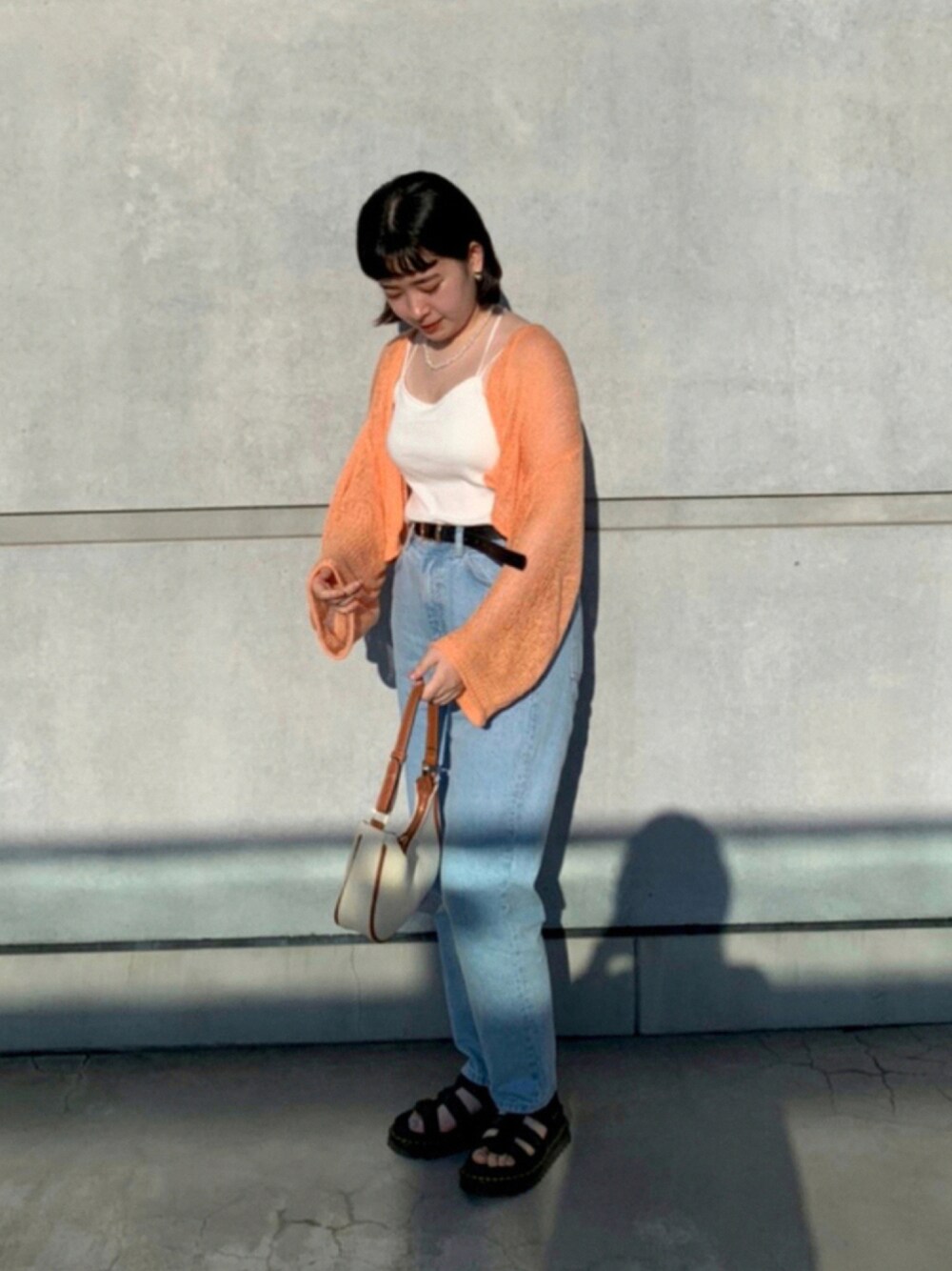 夏色オレンジコーデ🍊🧡 夏らしさ100--! タンクトップに短め編み編みカーディガンで、程良い肌見せとスタイルアップへ!