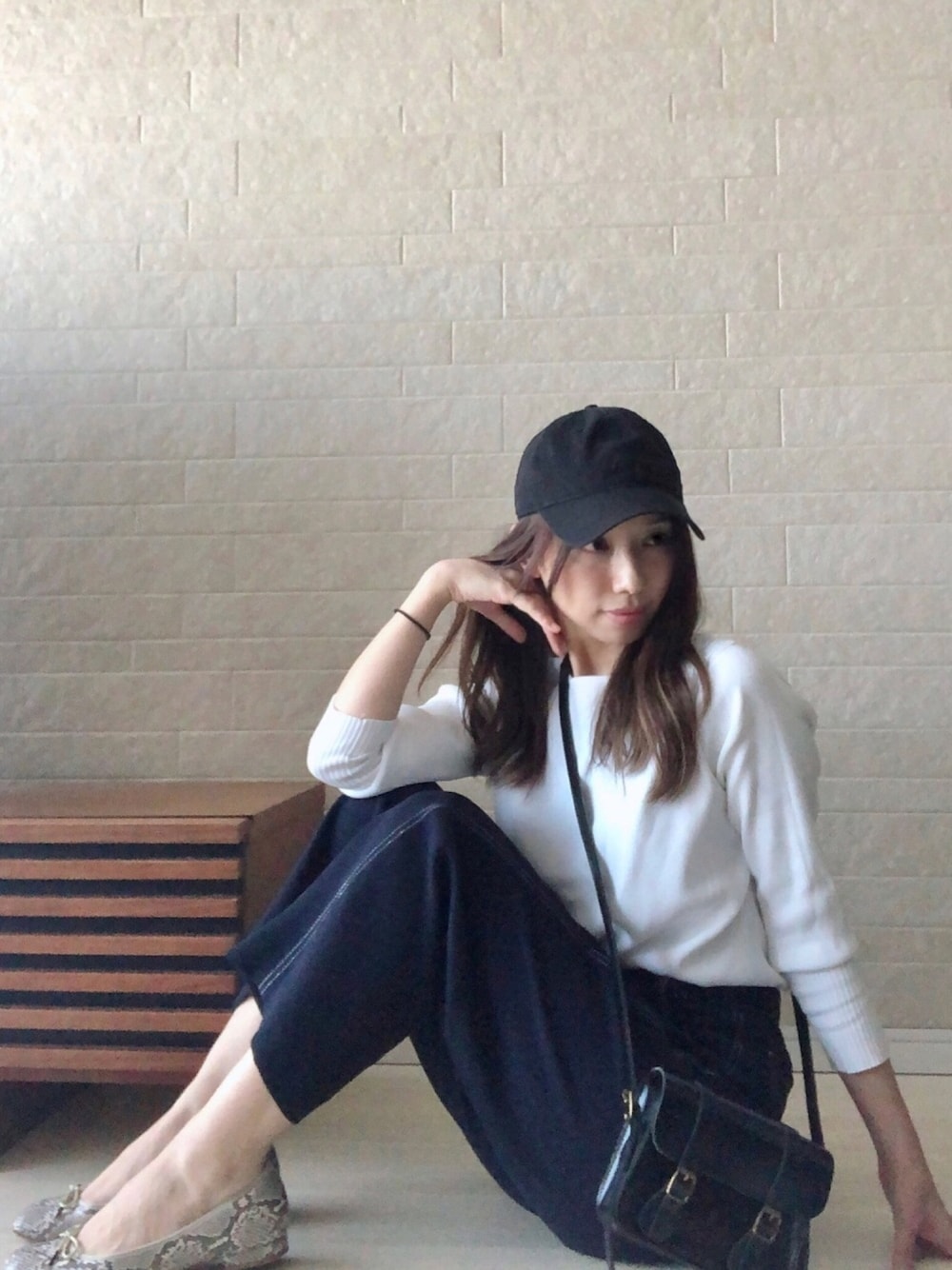 コンパクトニット ミリタリーパンツ バレエシューズ ロゴキャップ ミニショルダーバッグ パンツのシルエットを活かすために他のアイテムをミニマムにまとめました。 こちらのバッグはいつもお洒落で素敵なフォロワーさんの真似っこです。参考にさせてもらってます♡
