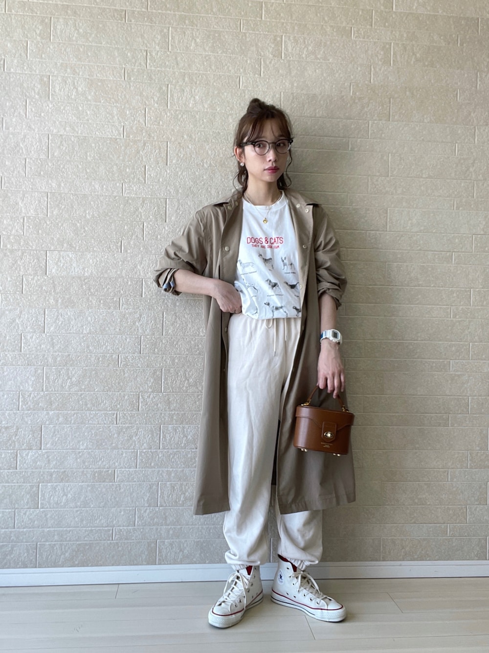 大人カジュアルな休日スタイル✏︎ 〼最近購入したスウェパンに白のロゴTを。白地の赤プリントは鉄板の可愛さです◎しかもMサイズでゆったりサイズ感なのに首元はキチンと詰まってるという✔︎✔︎ 〼こちらのレインコートは専ら普段使いしています。とても薄くて柔らか異素材なのに、風を通しにくいせいか温かく驚いてます。色違いの黒も使っていますがステンカラーでどんなコーデにも取り入れ易いです◎