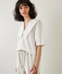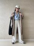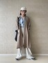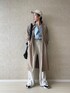 キレイ色ビッグカラー×リネンパンツで初夏の淡色コーデ✏︎ 〼旬のブラウスにリネンのイージーパンツを合わせてカジュアルダウン。足長効果を狙って足元は少しボリュームのあるスニーカーを。 〼羽織っているのは梅雨時期は毎日お供にしたいレインコート兼スプリングコート。パッカブルで嵩張りません✔︎ベージュのステンカラーなので普段使いしやすく、どんなスタイルも合わせやすいです◎
