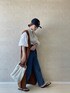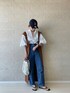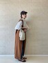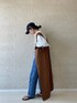 白ブラウス×デニムで大人の休日スタイル✏︎ ・いつもの王道デニムスタイルにジレ使いのジャンスカを投入。キャメルぽいブラウンでデニムと相性抜群◎ ・前開きでジレ、ボタンをとめればジャンパースカートになる2wayなワンピは、バッククロスのデザインがドレッシー。後ろ姿はまた違った雰囲気を楽しめます◎