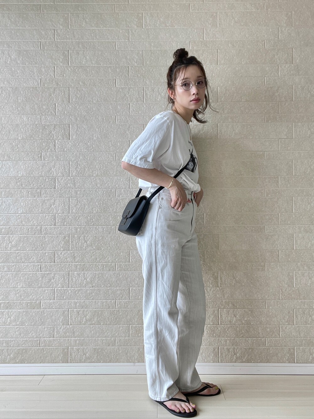 夏のオールホワイト、ワントーンデニムコーデ✏︎ ・なんてことない日のコーデ。自分の体型に合った動きやすく飾りすぎない格好が好きなのでいつもこんな感じです。 ・最近お気に入りのハイウエストデニム(色違いで3色所有)にTシャツをタックイン。手ぶらが好きなのでバッグは基本斜めがけできるもの◎