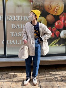 ロゴスウェットできれいめカジュアル✏︎ フレアスラックス×6cmヒールのショートブーツで文句なしの脚長スタイル。股上が深くセンタープレスできちんと感あり◎普段ヒールを履かない私でもブロックヒールなら安定して歩けます* 【24.5-25cm幅広】25cmで問題ないサイズ感でした。