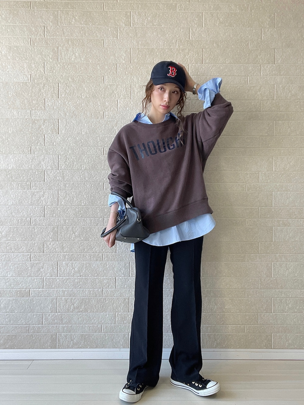 大人カジュアルにイチオシしたいトラウザーパンツ✏︎ スウェットからチラッと見えるオーバーサイズシャツでクリーンなイメージを◎ スニーカーと相性抜群の丈感、落ち感、シルエットのいいとこ取りトラウザーパンツ✔︎こなれ感ある大人カジュアル作りに活躍する一本です。質感などぜひ動画でチェックしてみて下さい*