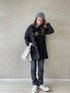 シンプル大人ストリート✏︎ ・ダークカラーのワントーンに白のコンバースがポイント。 ・裏起毛デニムは柔らかく穿き心地の良さはイチオシ。冬のレイヤードにも響かないスリムなシルエットも使いやすいと思います◎ ・ARKLEYハーフ丈ジャケットはロング丈よりカジュアル感が増しスニーカーコーデと相性◎重すぎない黒の配色と金ボタンが絶妙で、きちんと感も必要な大人カジュアルにぴったりアウターです*