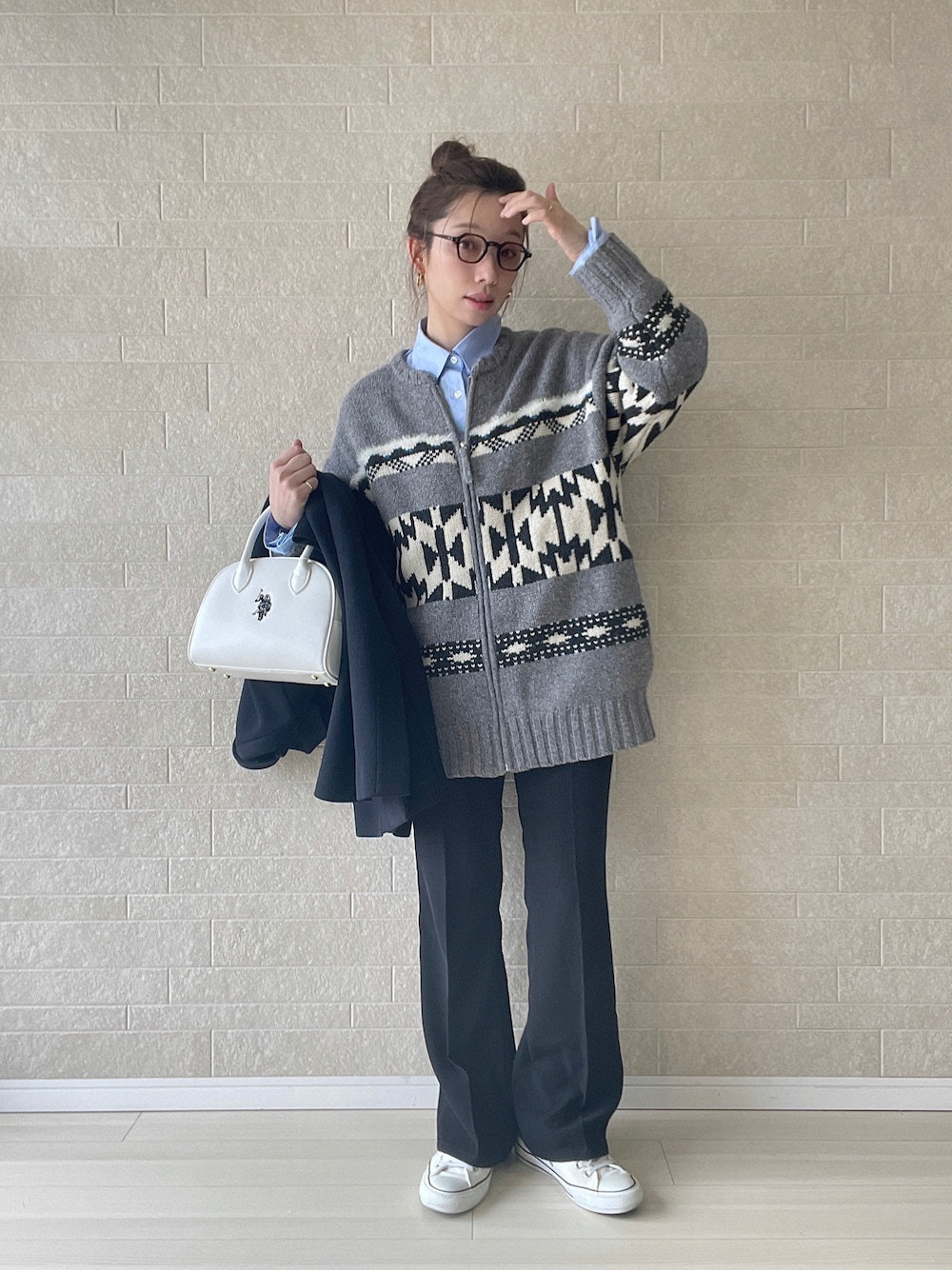 冬は白差しでクリーンにシャツとニットのオーセンティックスタイル✏︎ お馴染みのPOLO(馬に乗って行う競技の名称)マークが入ったシンプルでワンポイントに使いやすいボストンバッグ。嬉しいショルダー使いの2way◎ スニーカーコーデとも相性抜群。 真っ白な小物はバランス配分を気をつければ冬の差し色に抜け感大◎