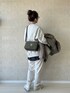 淡色ワントーンカジュアル✏︎ 上下スウェットで楽ちんスタイル。レイヤードにバンドカラーのシャツできちんと感をプラス。 淡色コーデのトーンを揃えるのにニュアンスカラーのカーキバッグがしっくり◎シンプルなデザインにあたたかみのあるコーデュロイ素材、品のある配色が今シーズン推しのバッグです*