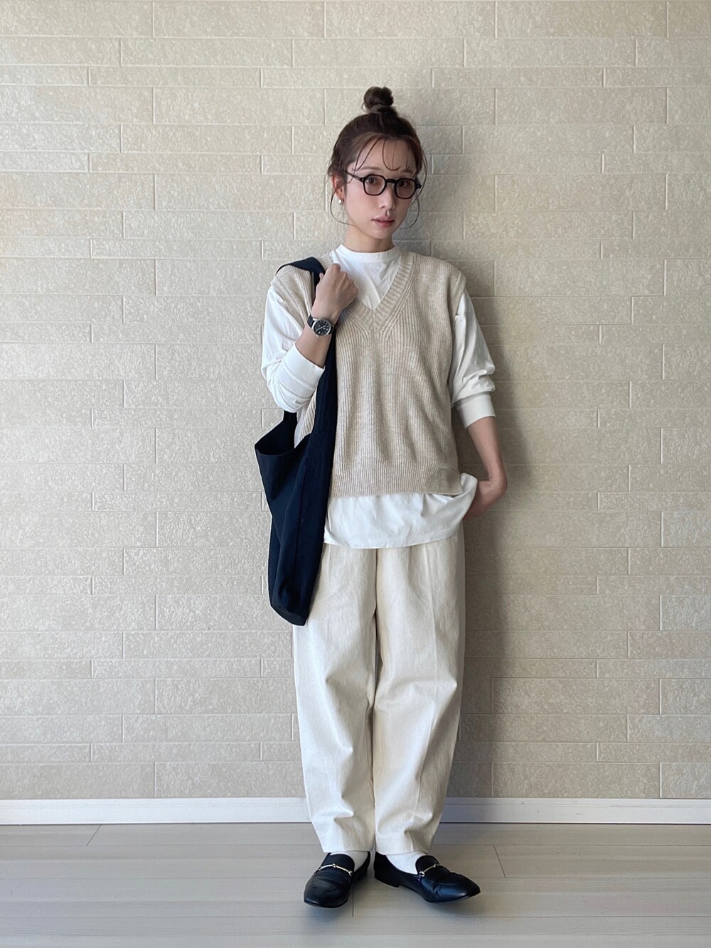 頼れるベーシックアイテム✏︎ アウターで季節感を、インナーはベーシックなアイテムさえあればシーズンレスで着れるコーデが完成します○ 淡色を活かしながら黒レザーアイテムで大人カジュアルに。ローファーと相性抜群なこちらの腕時計、黒ベルトに黒フェイスで統一感あり。アクセサリー感覚で使えコーデ全体が引き締まります✔︎(5枚目に⌚️アップ画像あり)
