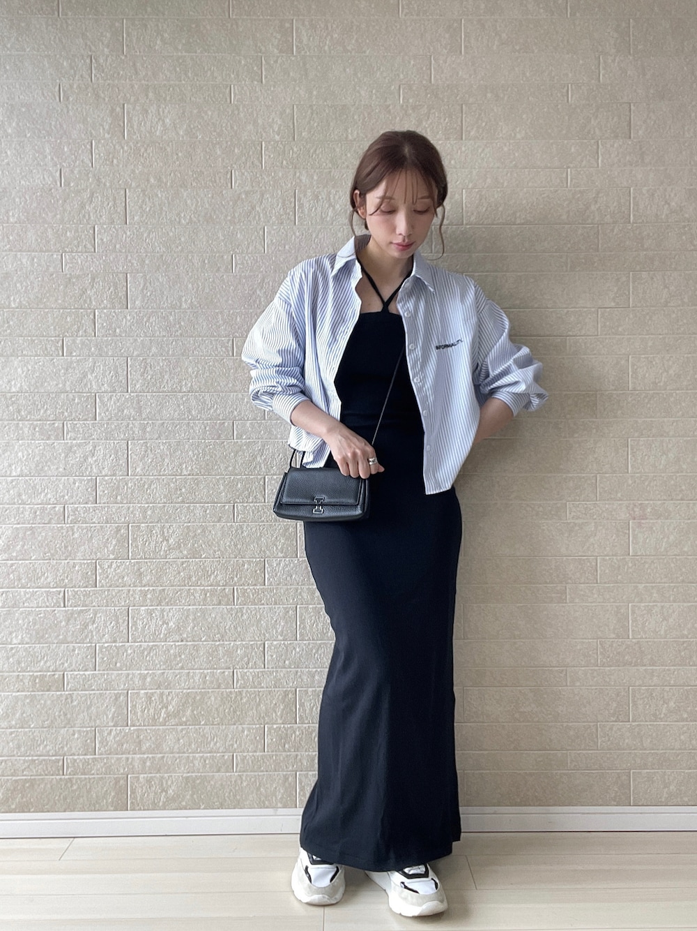 えばみ。(DOORS ららぽーと豊洲)のシャツ/ブラウス「ミニ刺繍ロゴショート丈ストライプシャツ」を使ったコーディネート