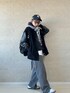 #PR #U.S.POLO ASSN. ■ストリートカジュアル 久々メンズライクに振り切ってみました。 素材違いのモノトーン系でまとめ、小出しに散りばめた白で抜け感を。ふんわりチェックのストールがアクセントになってます✔︎
