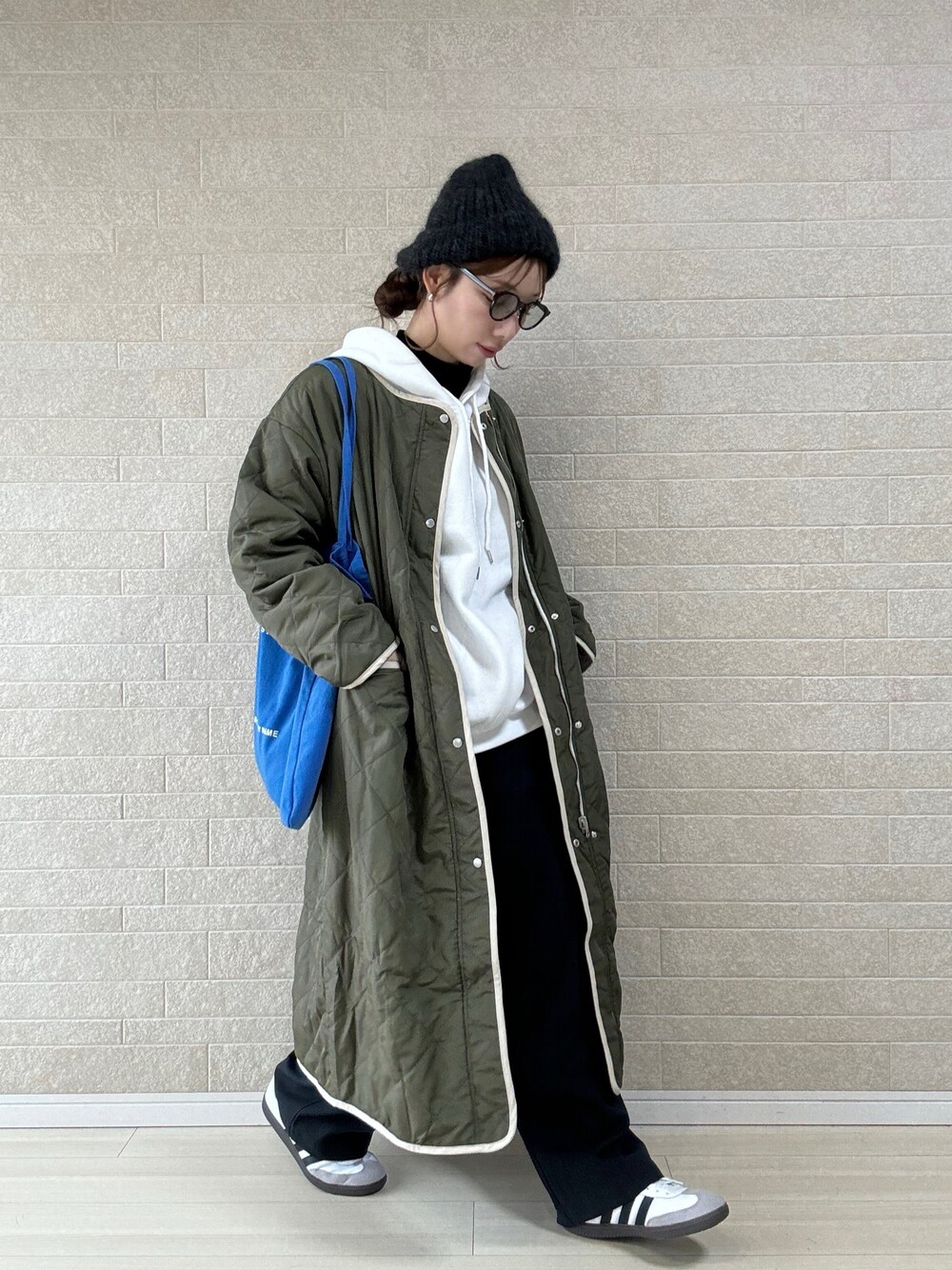 えばみ。(DOORS ららぽーと豊洲)のその他アウター「キルティングリバーシブルロングコート(カーキ×アイボリー)」を使ったコーディネート