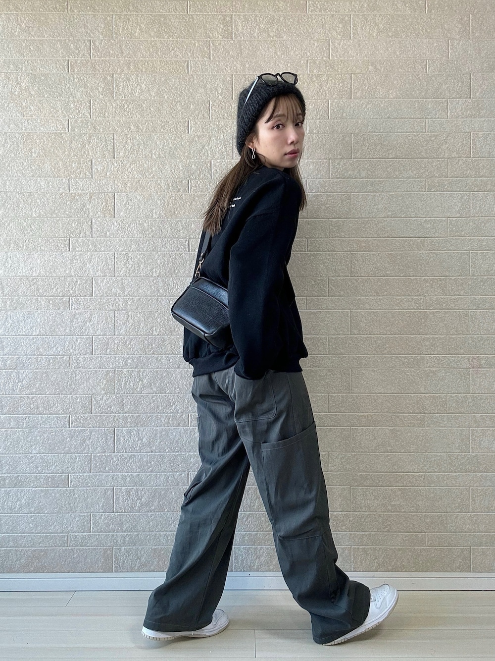 えばみ。(DOORS ららぽーと豊洲)のスウェット「裏起毛フロント&バックロゴスウェット(ブラック)」を使ったコーディネート