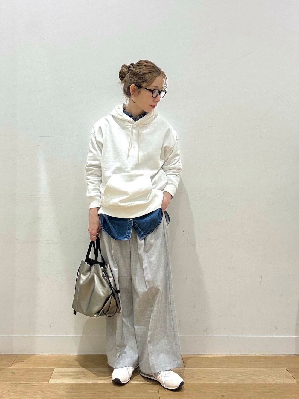 寒暖差の大きいこの時期おすすめ 『白パーカー×スラックス』で王道大人カジュアルコーデ👟 ・今回イチオシのSALE品🔥重ねて着てもほどよいゆとりのサイズ感◎春コーデに映えるシンプル白パーカー ・サラッと軽い春アウターは普段使いしやすいミドル丈。薄手の生地でお洗濯も可能🧺 ・以前着用の『かぐれ サマーウールスラックス』の色違い。とても軽い着心地◎タックが入った太めパンツですがセンタープレスでスッキリ見え✨ 着回しに便利なパーカーとパンツ購入しました😊