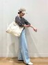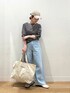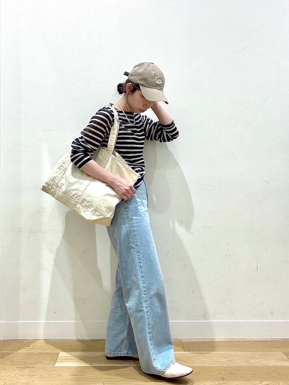 定番ボーダートップス『シアー素材』でよそ行き+華奢見えスタイル 👖…以前紹介したLeeの別注デニムの着回し。私は体重増(減)しやすいので結局Mサイズを購入し丈直ししました。店頭ではこのパターンでのご購入も度々見受けられます📏🧵 👕…落ち着いたネイビーと白のボーダーなのでシアー素材でも挑戦しやすいと思います◎インナーにはタンクトップ着用でヘルシーに肌見せ✔︎ 🥿…甘すぎないスクエアトゥ。先端が幅広なので外反母趾でも◎柔らか素材で履きやすく25cmの私でも快適💁♀️ 🧢…日焼け対策でキャップ需要が増えるシーズンですが、キャップの日でもさりげなくアクセサリーを身につけたり、足元をスニーカー以外で合わせたりすると女性らしさやきちんと感が出ます😊