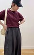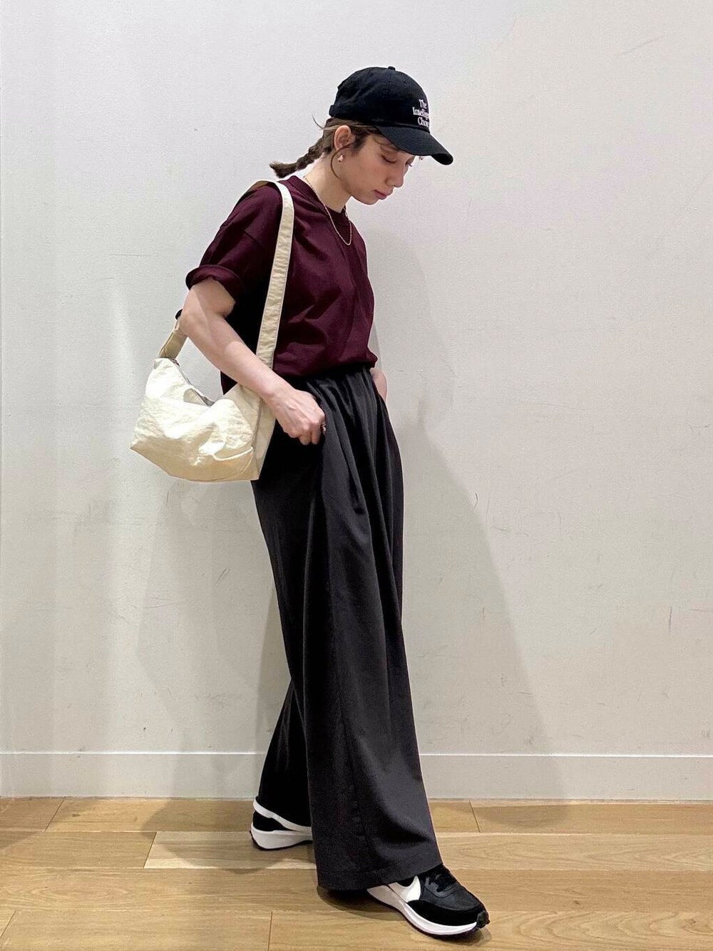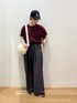 □時短気映えのワンツーコーデ 👕…UVカット・吸水速乾に優れた素材◎カラバリの豊富さも魅力✨やや短めな着丈でシンプル且つバランスよく見せてくれます(ダークプラムはHPより暗めでアメリカンチェリーのようなシックな色味です🍒) 👖…とろみ素材で身体のラインを拾わないゆったりシルエット◎長め丈が好みなのでMサイズを購入し丈を少々詰めました(股下68cmに直したものを着用) 🧢…深すぎず浅すぎずな高さが絶妙◎人とかぶりづらいデザインなのも個人的におすすめ 👟…クッションの効いたソール、柔らかい素材でストレスフリーな履き心地◎25cmの取扱いが嬉しいです🥹