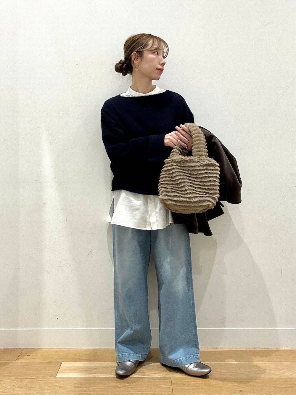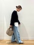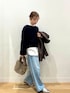 年末年始の帰省やお出かけに②🎍 【冬も大人気ワントーンコーデ🧶】 ◼︎この冬、店頭で私が最も着ていたニットでお客様にもご好評いただいた【かぐれ アルパカ混ワイドスリーブニット】のご紹介です☺️ 軽くて暖かい素材、鮮やかなネイビー(写真だと伝わりずらいのが残念)がとにかく素敵💙腰の位置が高く見える、やや短め丈が何より魅力です✨ハイウエストのパンツやスカートと合わせたり、丈感を生かしてレイヤードしても可愛いです◎ ◼︎デニムは同じくかぐれの【フェードデニムイージーパンツ】 淡い水色と色落ち具合が冬のダークトーンアイテムの抜け感使いに、春の淡色コーデにも活躍します🩵 私はそのまま穿いていますが、少し大きめなサイズ感なのでウエストや裾を折り返してバランスとってみても良いと思います✔︎