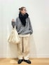 淡色トーンのあたたかコーデ🧶 ◼︎もちもちなモール糸の凹凸感が特徴の【EKAL ケーブル編みモールニットプルオーバー】オーバーサイズなのに膨らみすぎないシルエットで手洗い可能◎です🧺インナーに重ねた白のロンTがポイント✨ ◼︎見た目も穿き心地もあたたかな【かぐれ コーデュロイボリュームパンツ】は丈とボリューム感がオシャレ✔︎穿くだけで一気に垢抜けます🙌
